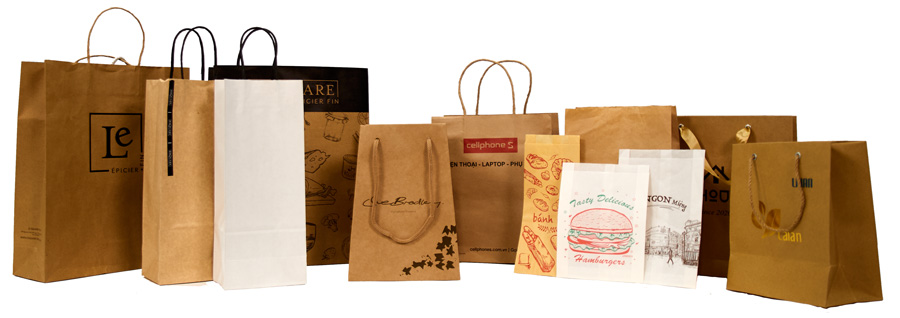 The rigidity of kraft paper makes it possible to manufacture bags of any shape and thickness in order to transport any type of product: bookstore bags, groceries, cosmetic bags, etc.